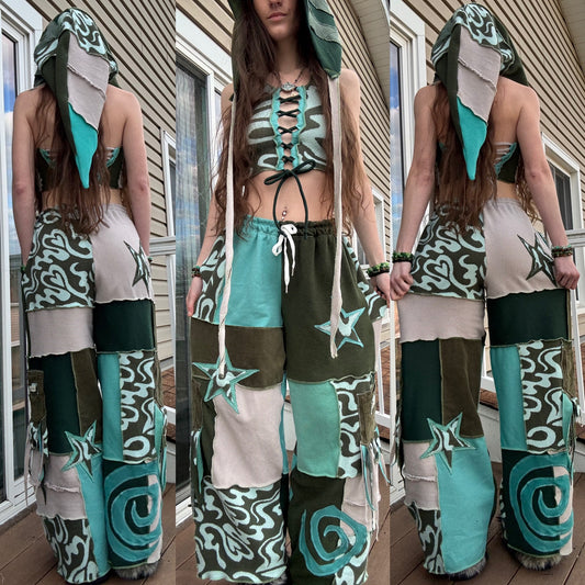 UPCYCLED PATCHWORK PANTS SET - 3 PIECE SET