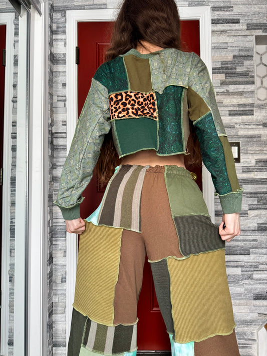 UPCYCLED PATCHWORK CROPPED CREWNECK