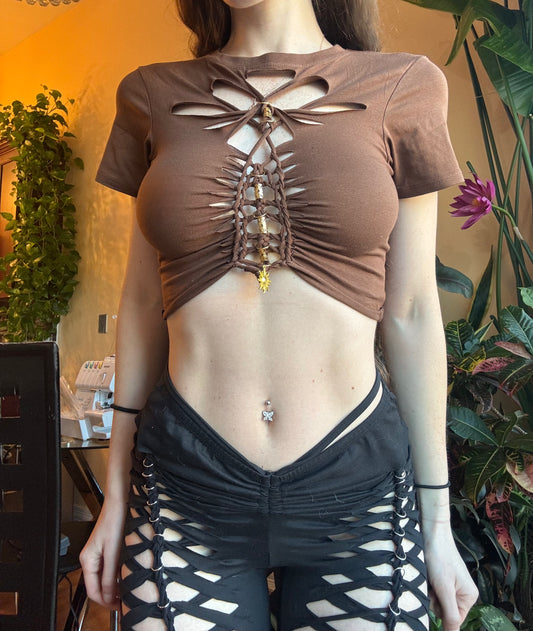 Sold outBROWN BRAIDED CROPPED BABY TEE