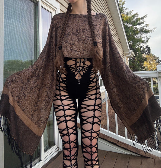 Sold outBROWN PAISLEY FLOWY PASHMINA TOP
