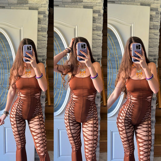Sold outCHOCOLATE FLARE JUMPSUIT