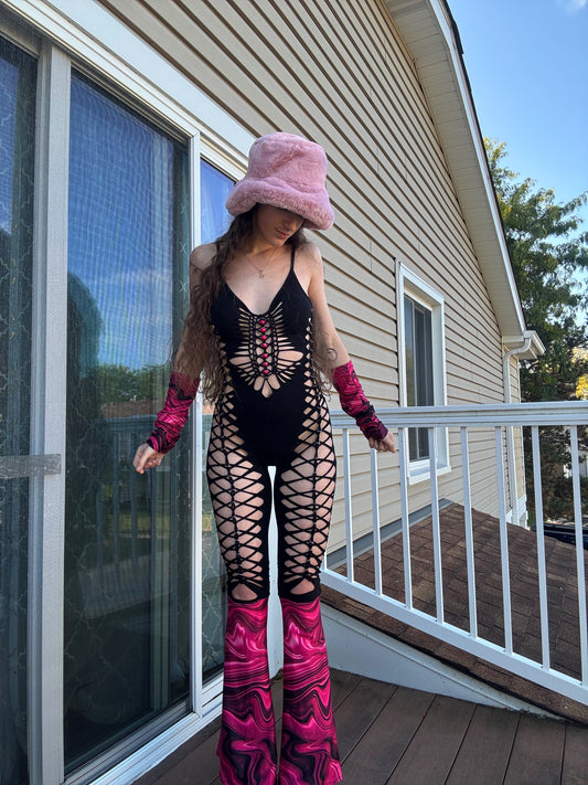 ONE OF ONE PINK MARBLE SLITWEAVE JUMPSUIT