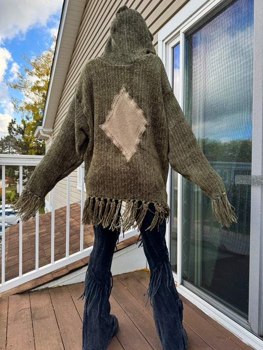GREEN KNITTED UPCYCLED SWIRL HOODIE