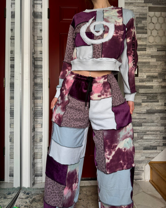UPCYCLED SET - PATCHWORK CROP CREWNECK & PANTS SET