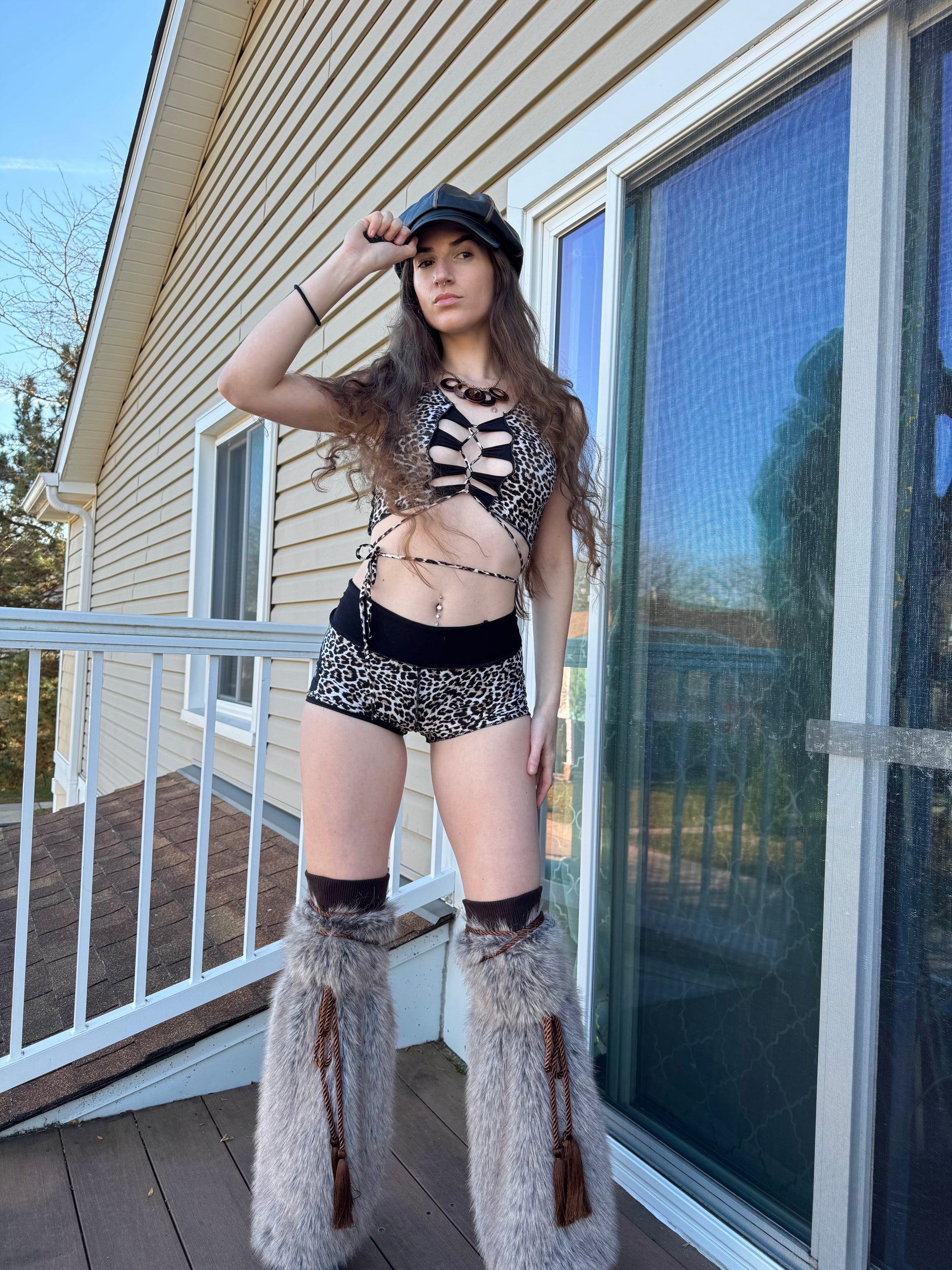 - Handmade one of a kind upcycled 2 piece cheetah shorts set