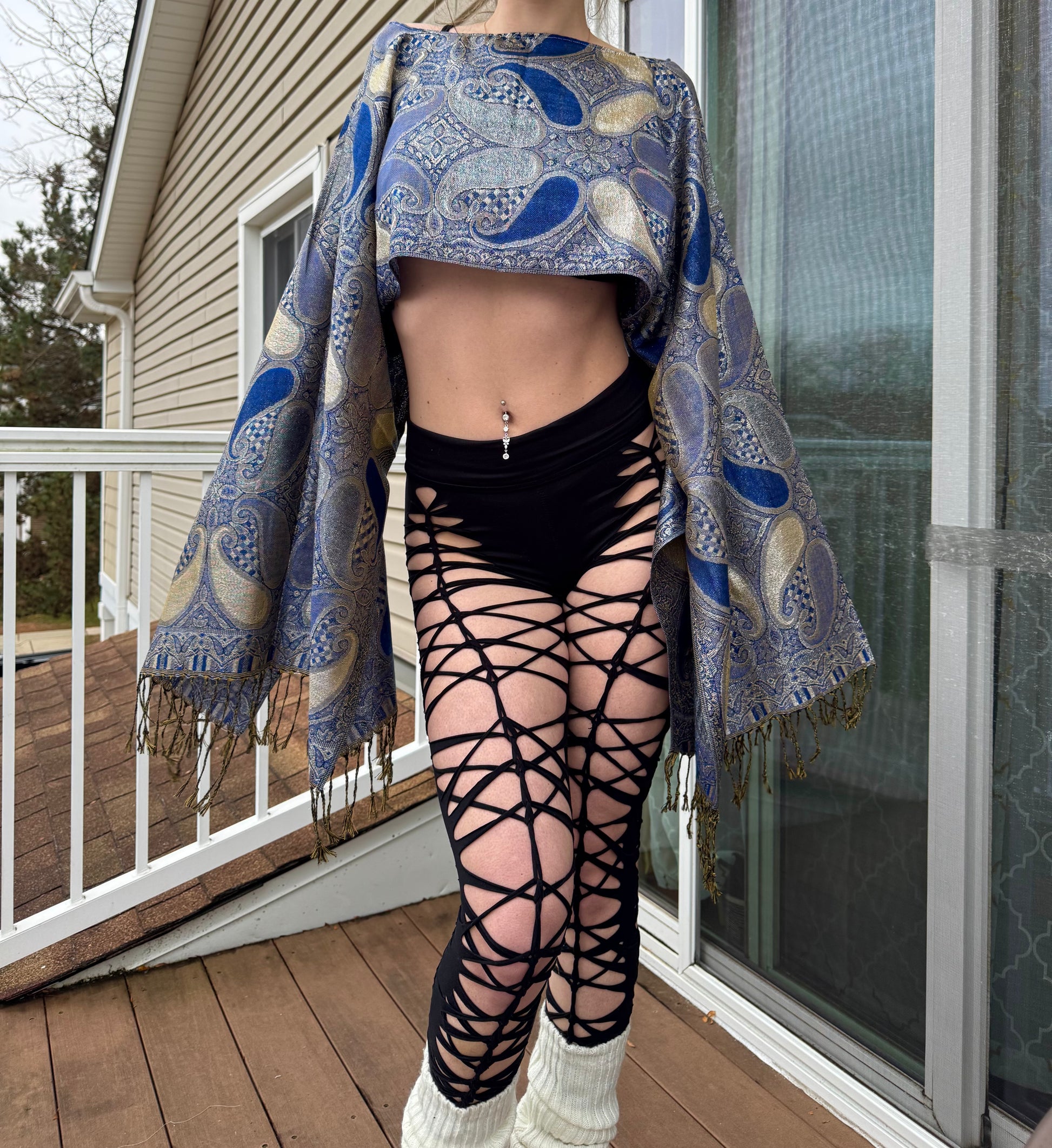 - Black stretchy braided // slitweave leggings