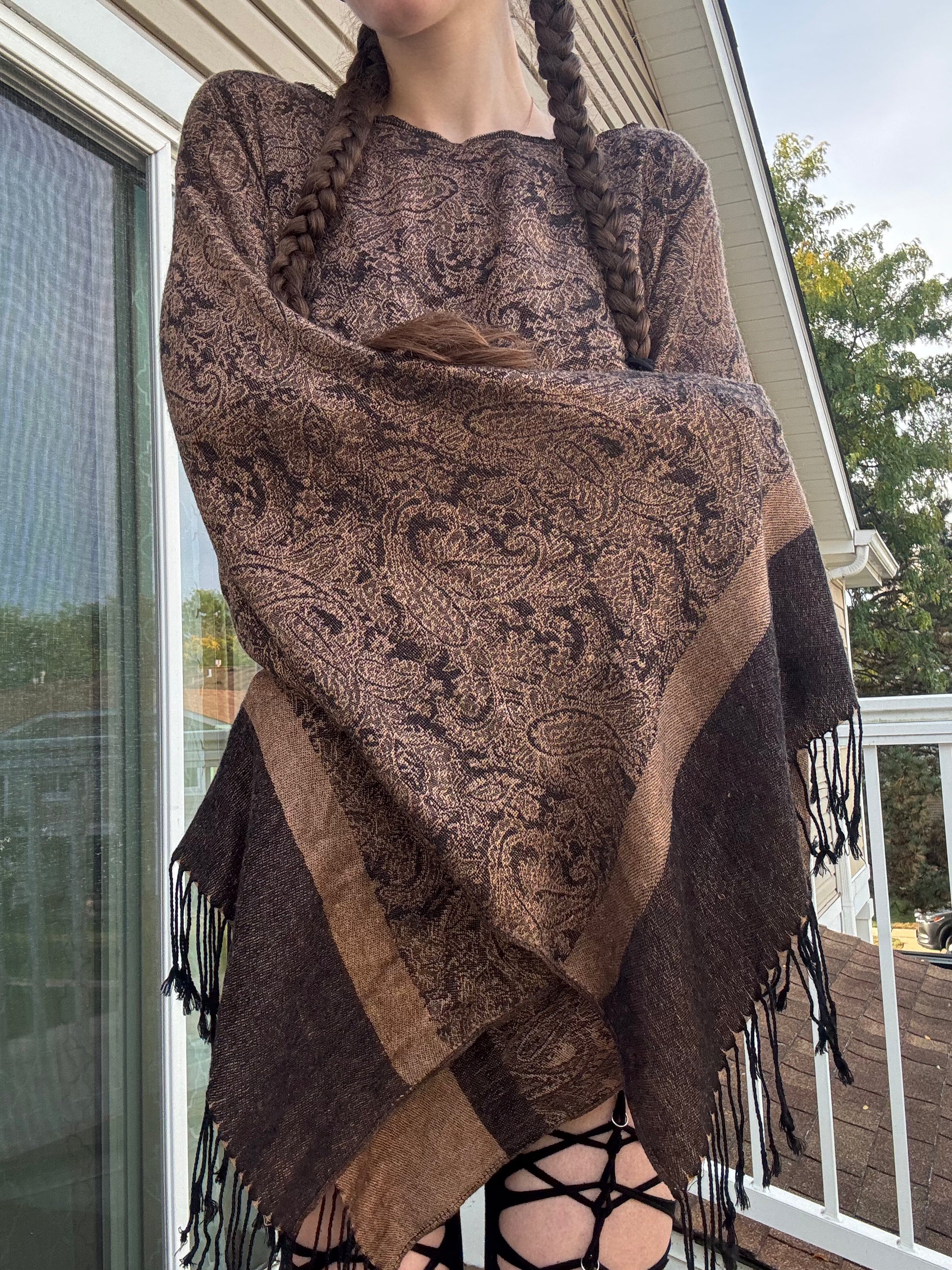- One of one brown/black hand sewn upcycled pashmina crewneck / long sleeve top