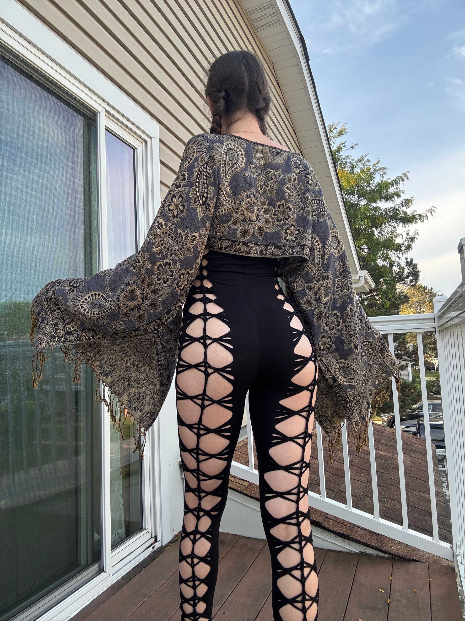 - One of one brown paisley hand sewn upcycled pashmina crewneck / long sleeve top