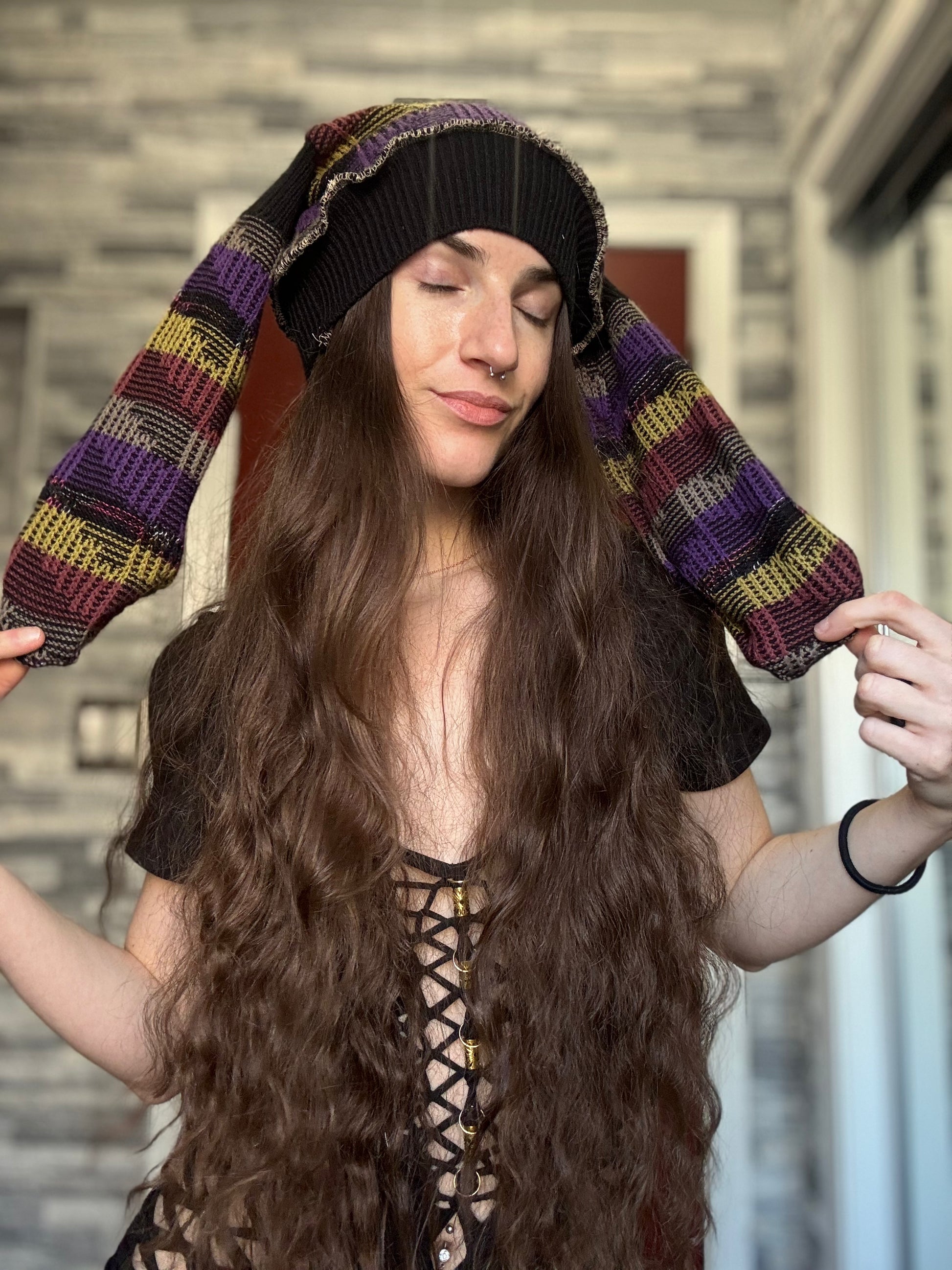 PURPLE UPCYCLED BEANIE BUNNY HAT