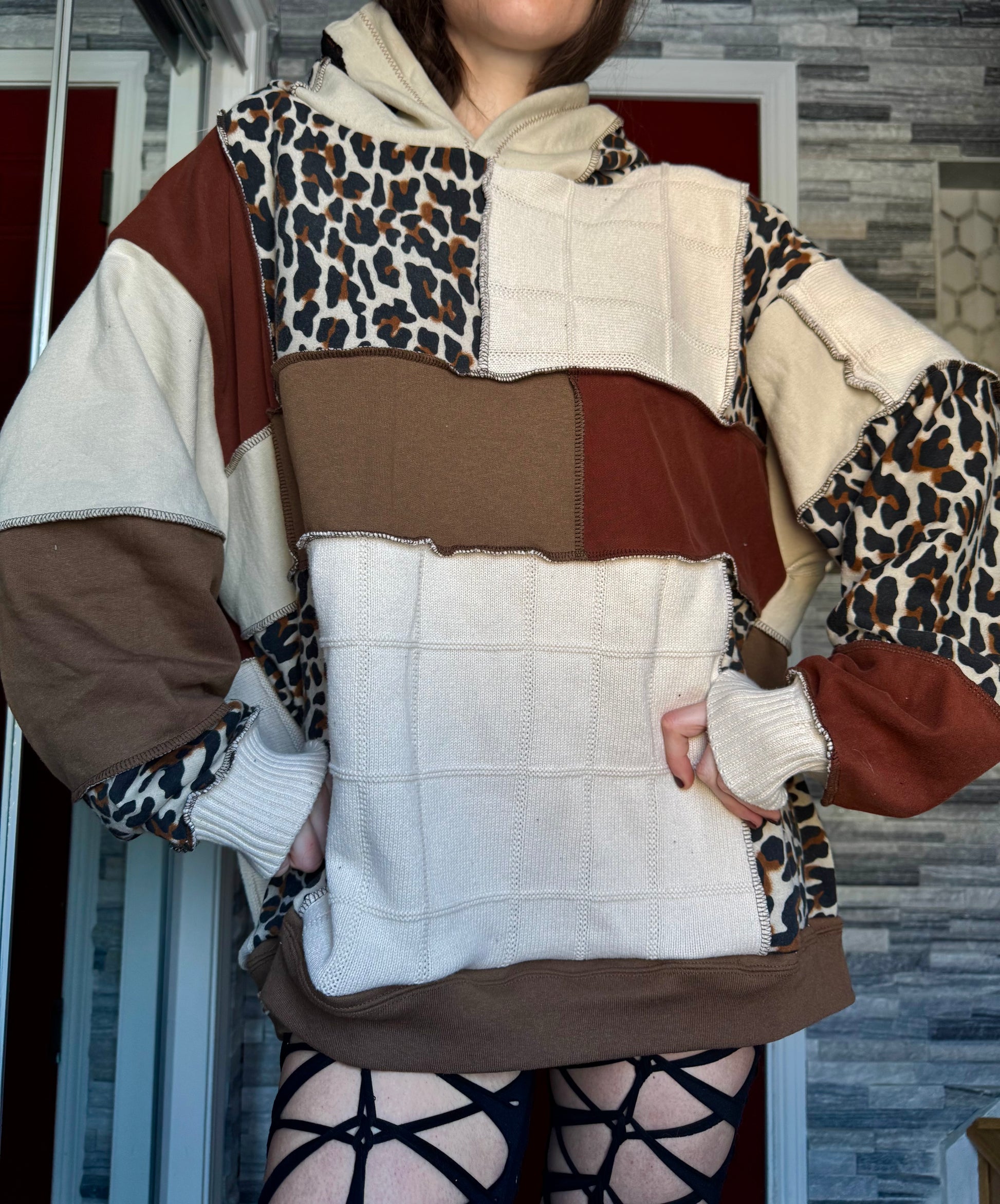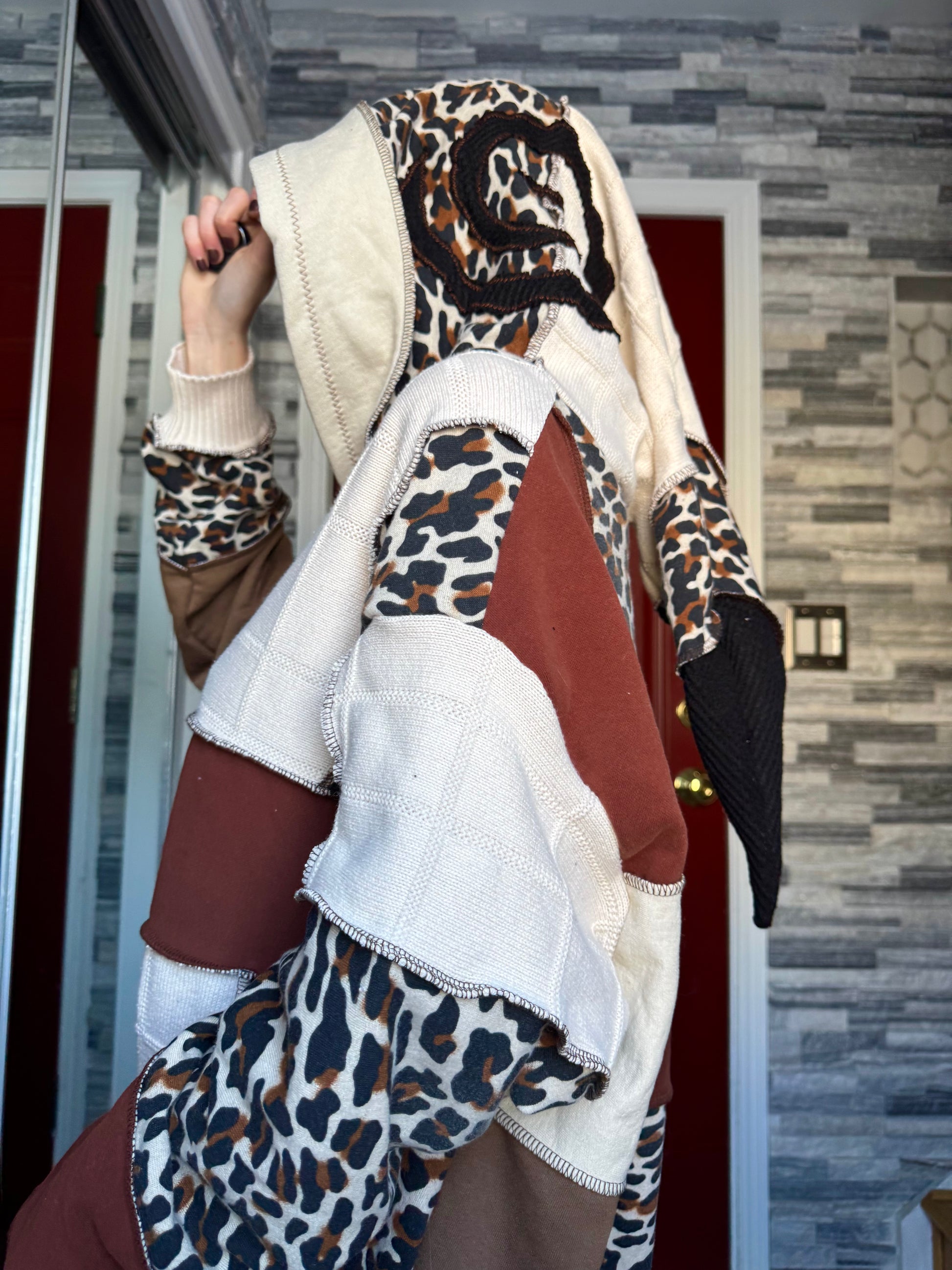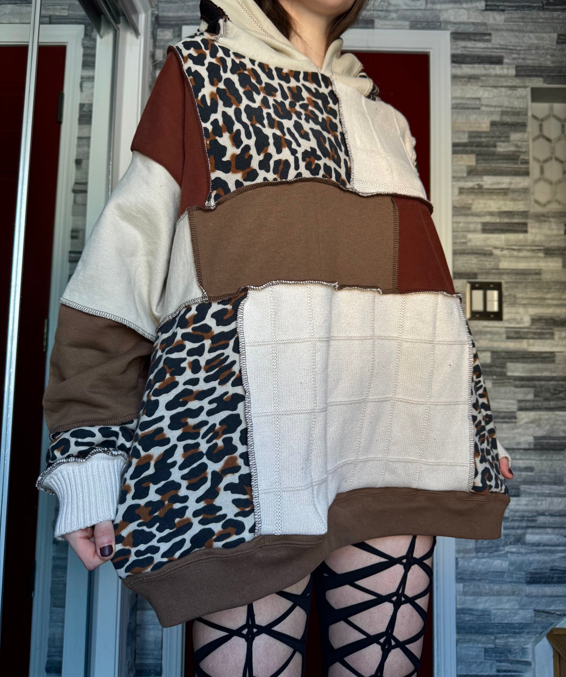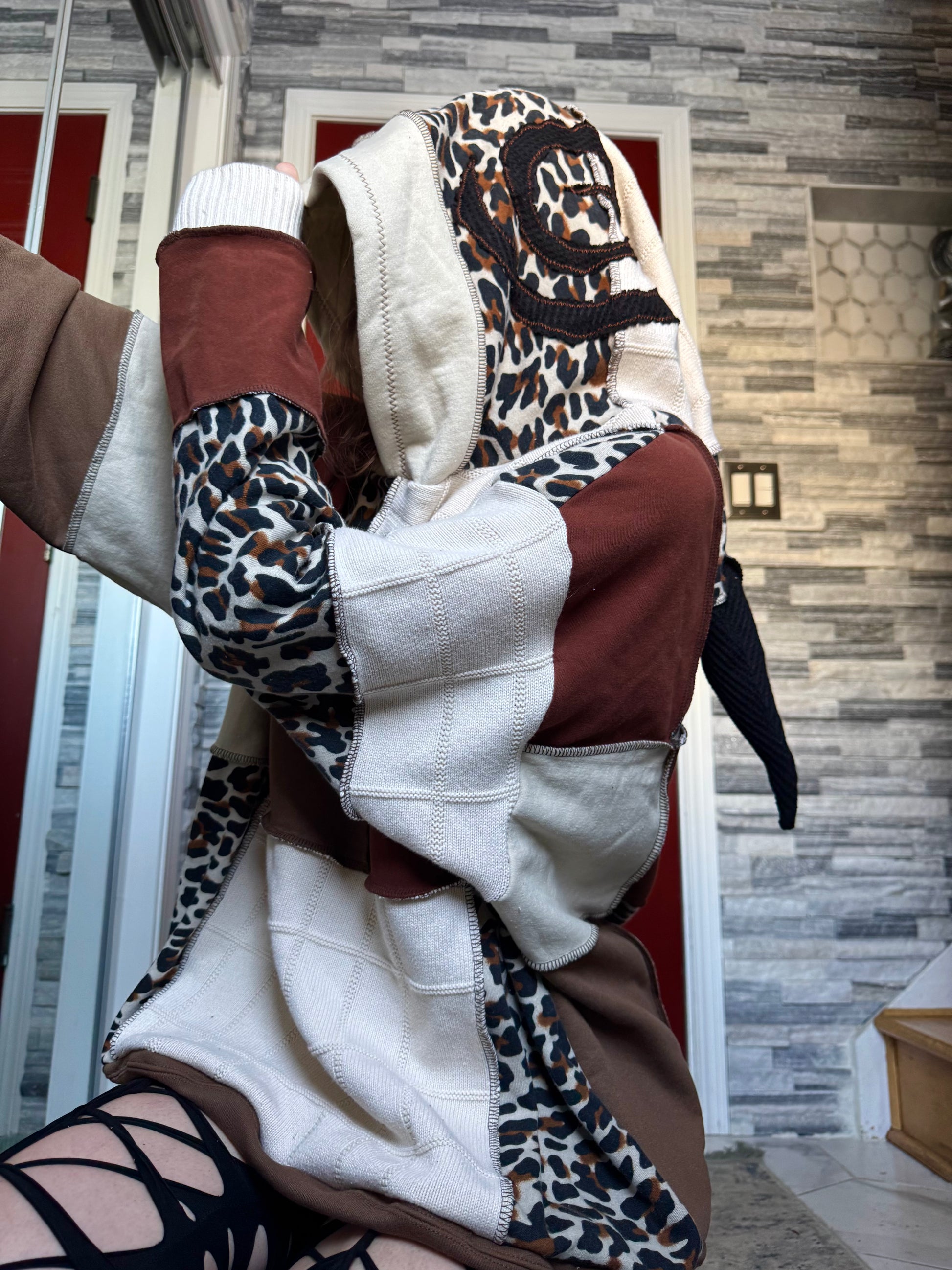 UPCYCLED LEOPARD PATCHWORK HOODIE