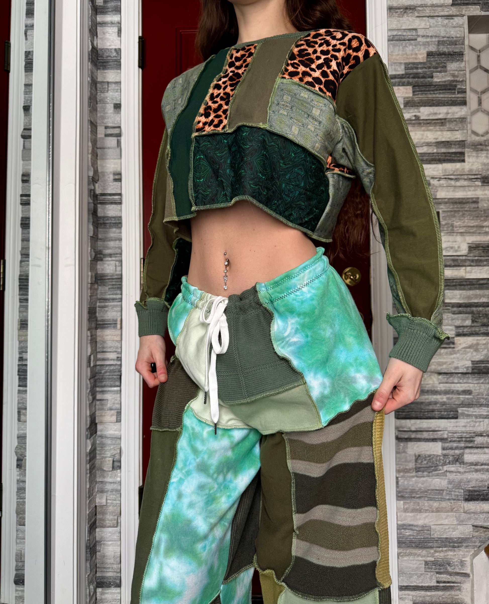 UPCYCLED PATCHWORK CROPPED CREWNECK