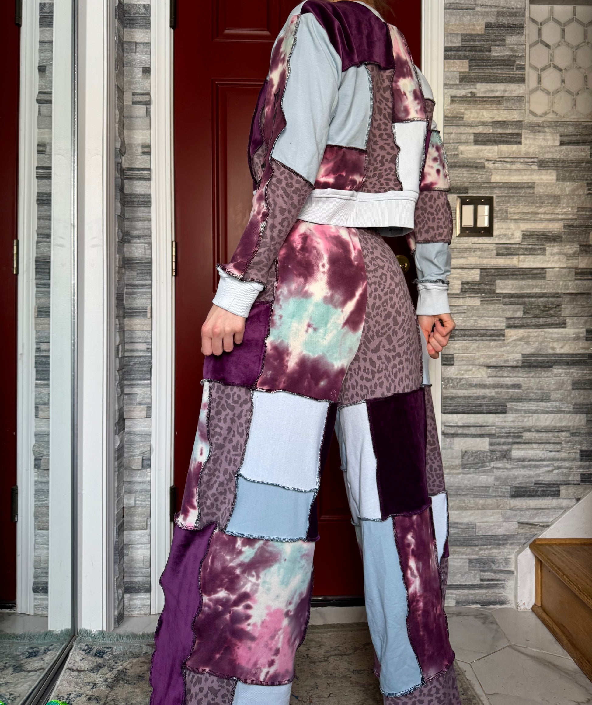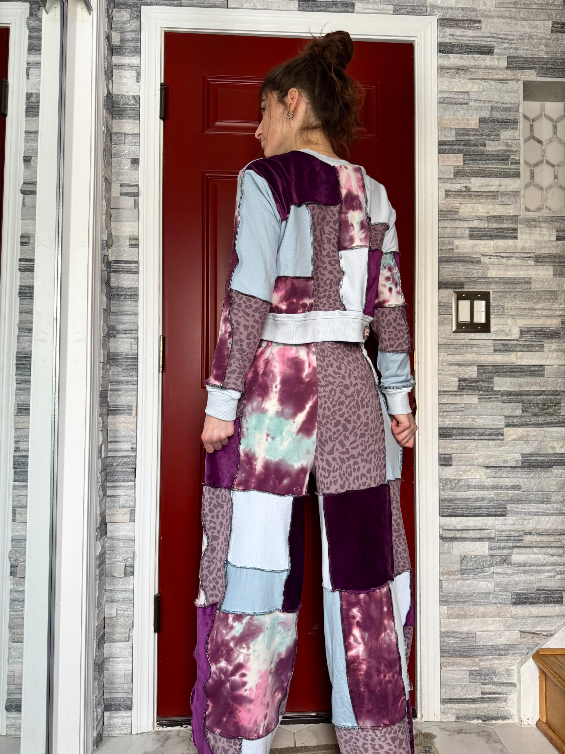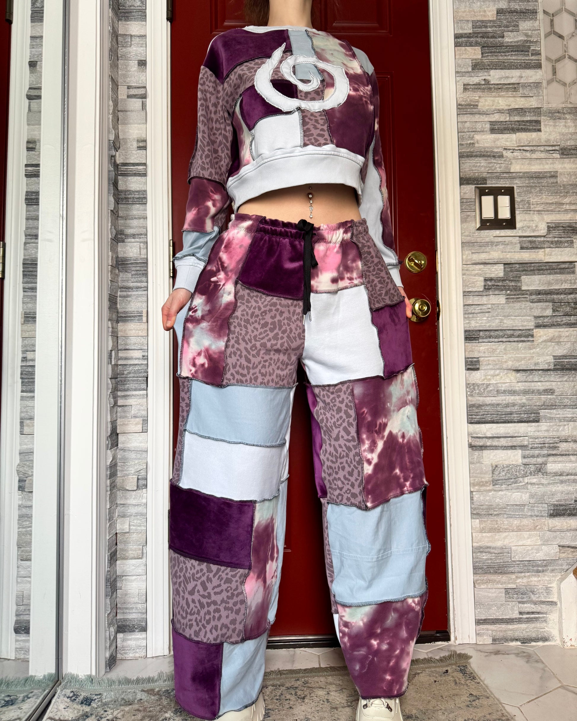 UPCYCLED SET - PATCHWORK CROP CREWNECK & PANTS SET
