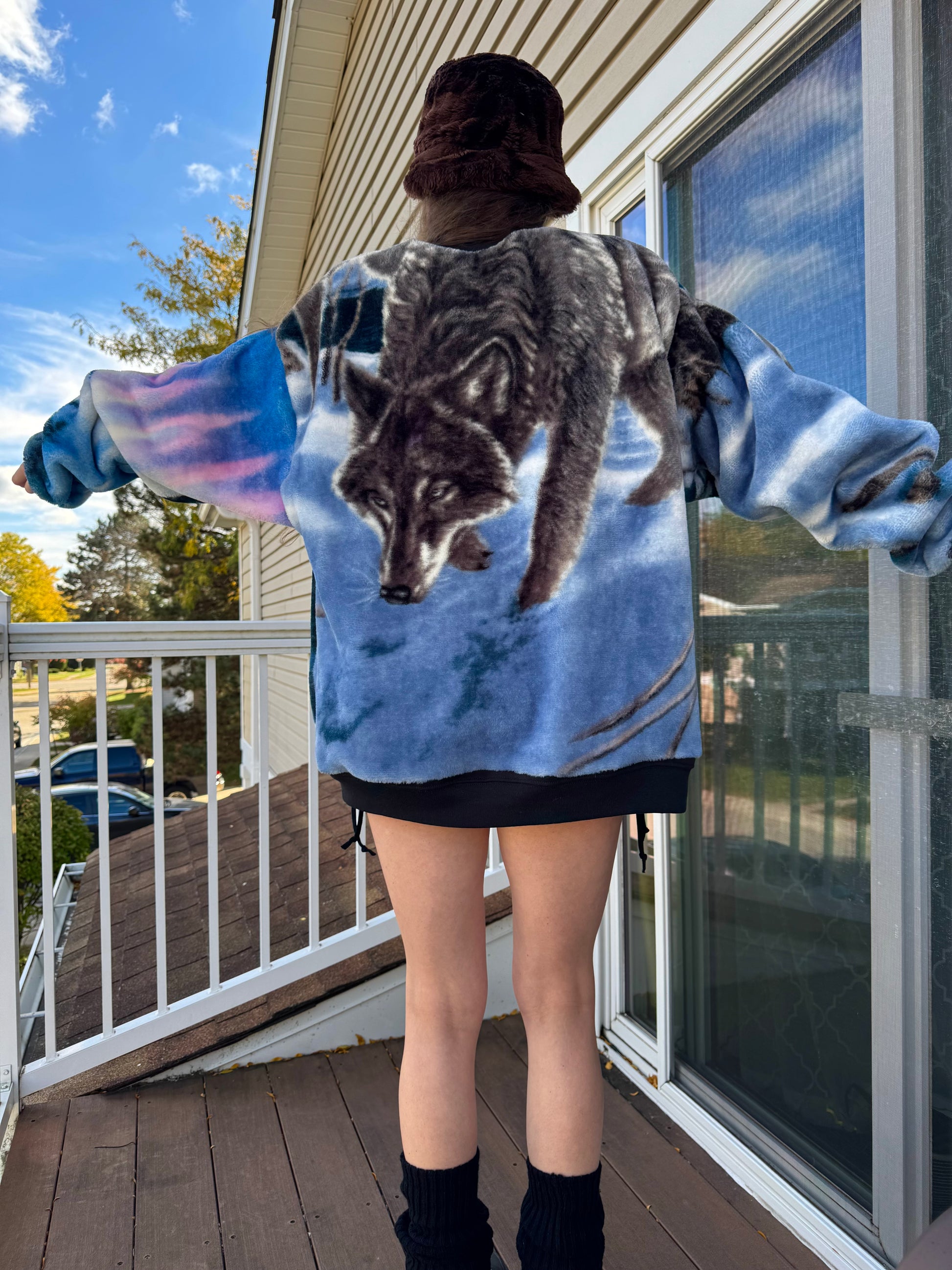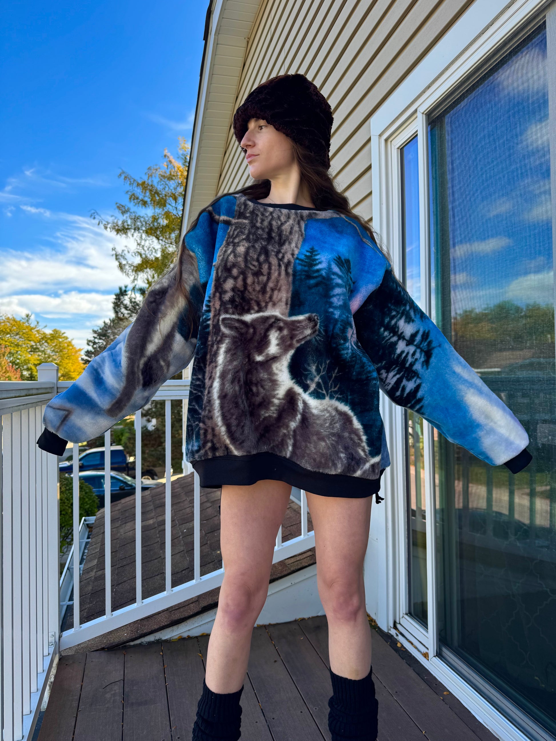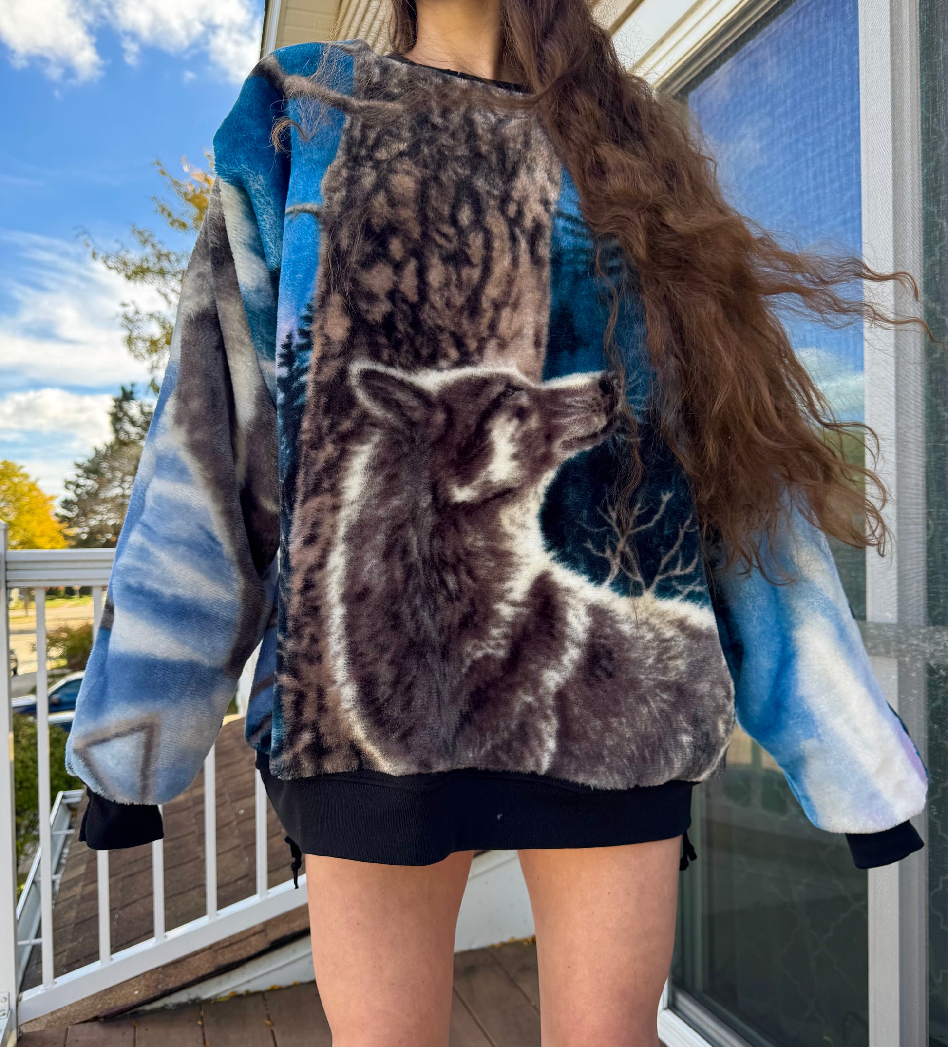 - Ready to ship upcycled wolf crewneck